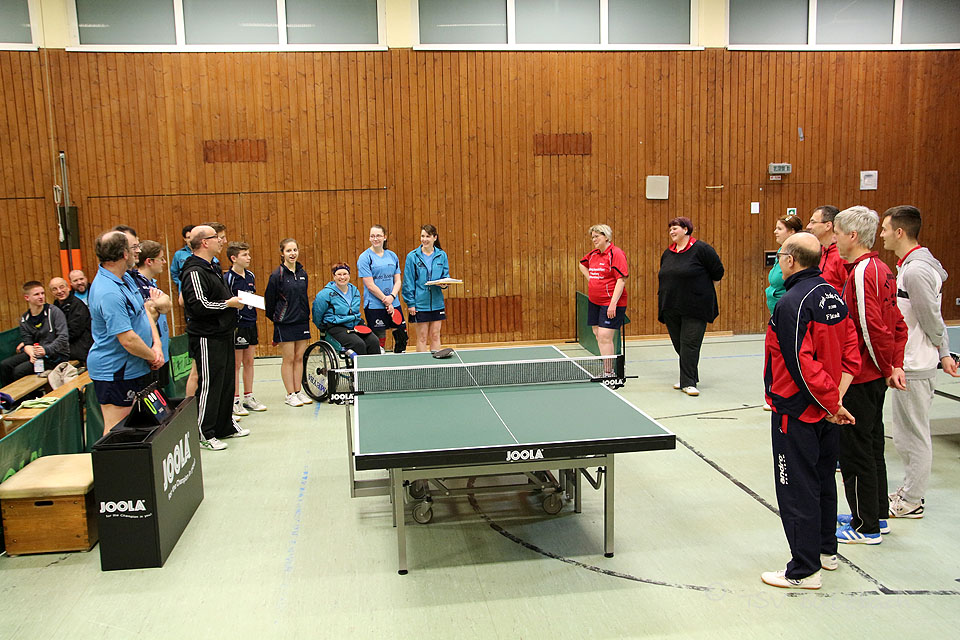 Dazu führte unter anderem die gemeinsame Begrüßung der Damen und Herren, eine gute Idee unserer Herren! Eine Begrüßung der etwas anderen Art - welchem ein gelungener Doppelspiel-Abend mit spannenden und freundschaftlichen Spielen folgte.