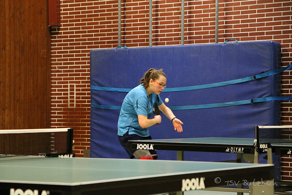 Unterdessen hatte es Eileen am Nebentisch mit Ann-Christin Jüngst zu tun. Auch hier gab es eine 2:0 Satzführung für Butzbach, bevor auch Eileen einen kurzen Einbruch bekam und Satz 3 an die Gegnerin abgeben musste. Satz 4 ging dann jedoch wieder an Eileen und der Vorsprung konnte auf 3:1 ausgebaut werden.